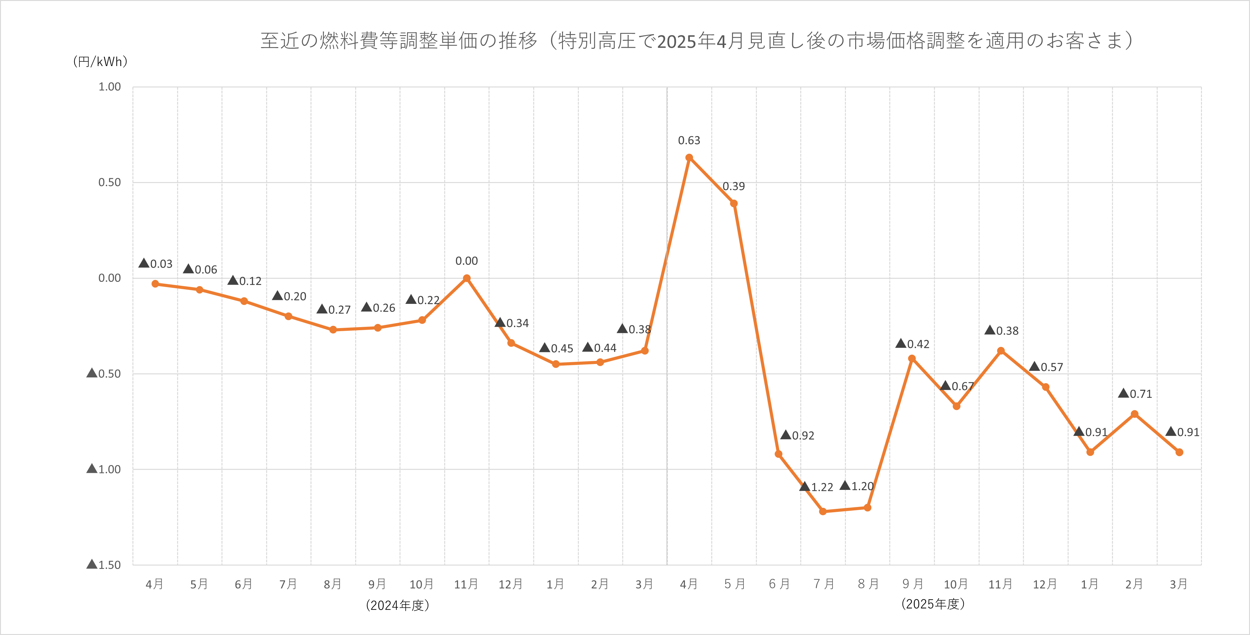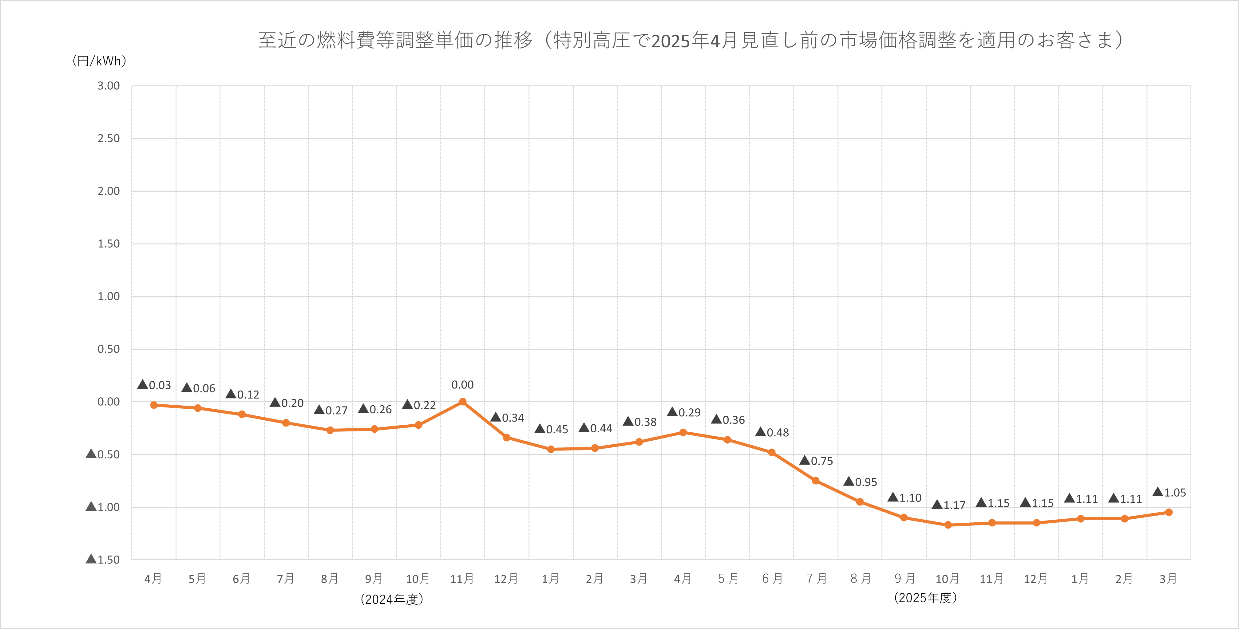 (2024年9・10月分:▲2.00円/kWh、2024年11月分・2025年2・3月分:▲1.30円/kWh、2025年4月分:▲0.70円/kWh)
