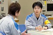 - 濵田さん:原子炉を運転する発電課は、自分がおこなった操作によって原子炉のどの部分が作動し、どのような結果を生むのかを頭の中でシミュレーションできて一人前。原子炉の仕組みや現場作業の流れなど、原子炉全体を把握していなければなりません。幅広い知識が必要とされるので、常にアンテナを張って新しい情報を得るよう心掛けています。また、知識と同じように大切なのが経験です。私がこれまでに得た技術や情報、感覚など、余すことなく後輩へ伝えることにも力を注いでいます。