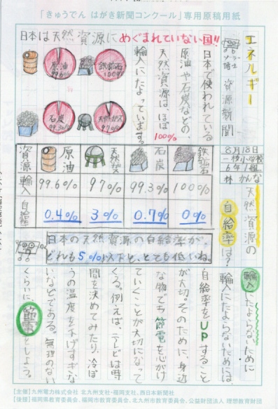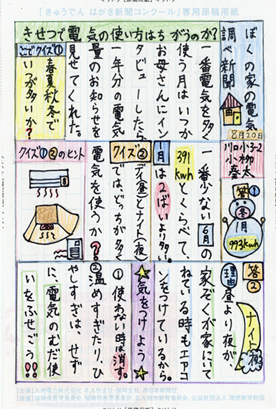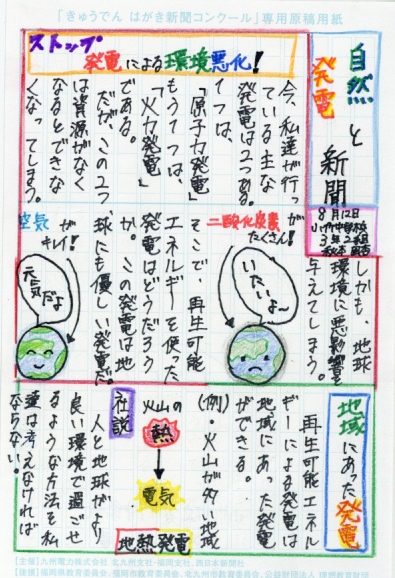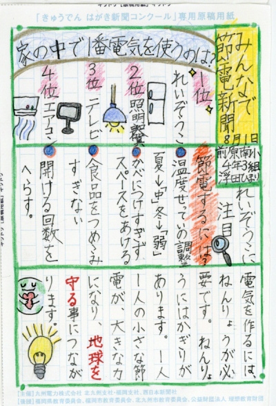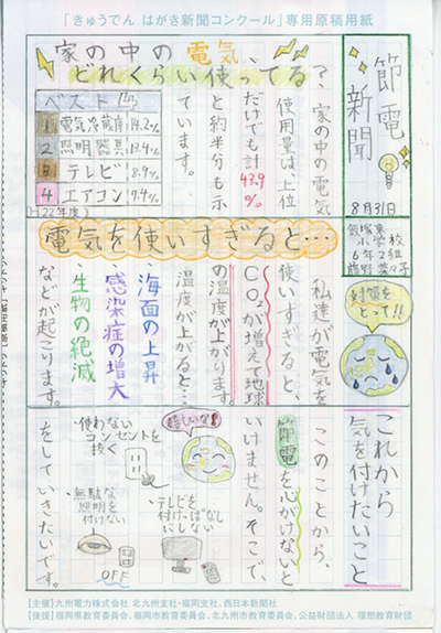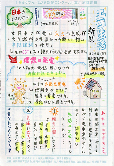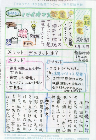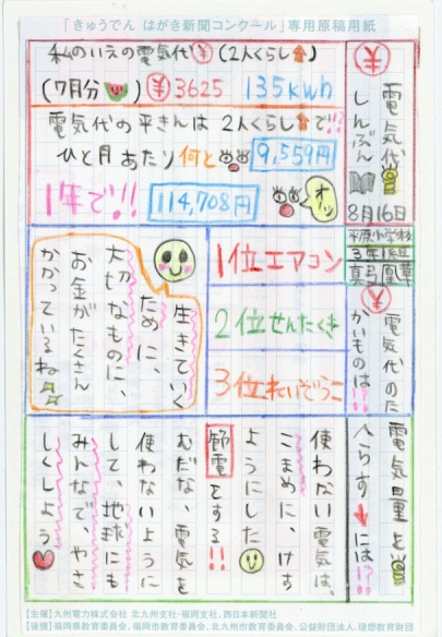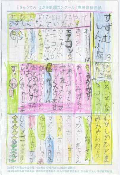 第3回 きゅうでん はがき新聞コンクール 入賞者発表