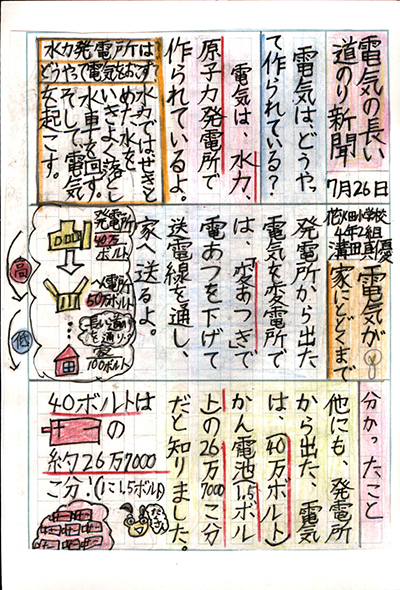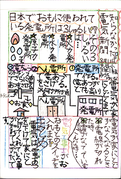 この「エネルギーの未来新聞」は、「比べる」ことでしっかりと考えているところが素晴らしいです。「比べる」ということは私たちが考えることの基本です。国を比べ、よさを比べ、そして「ぼくたちにできること」という主張を述べているので説得力があり、読み手をひきつけます。
