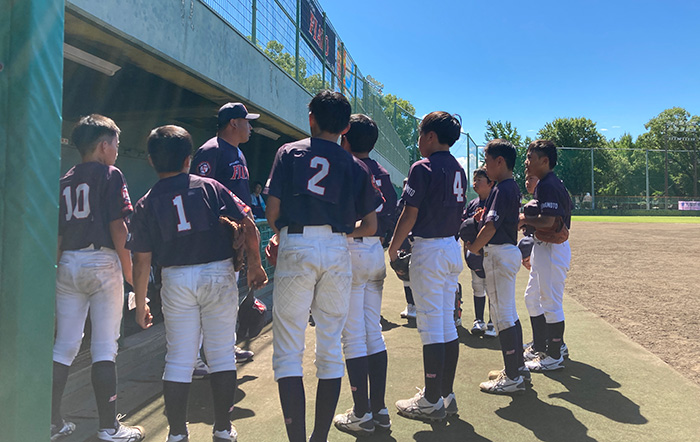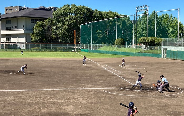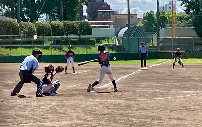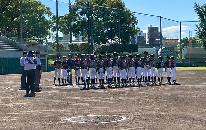 グランドの気温が40度に迫る猛暑の中、両チームとも熱くぶつかります