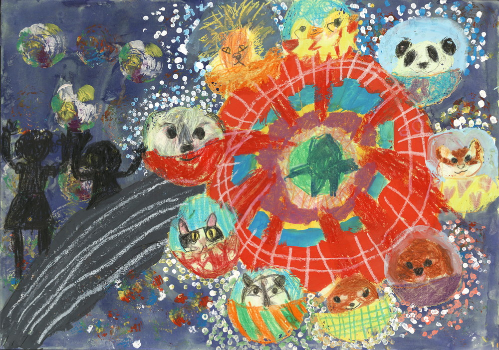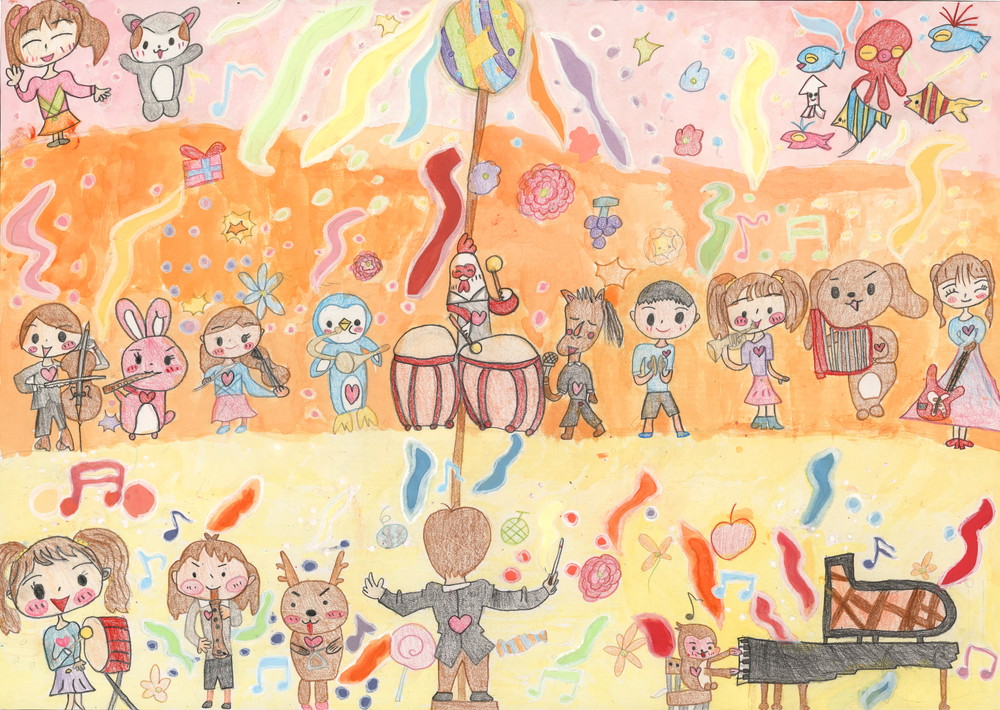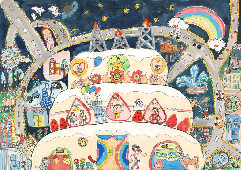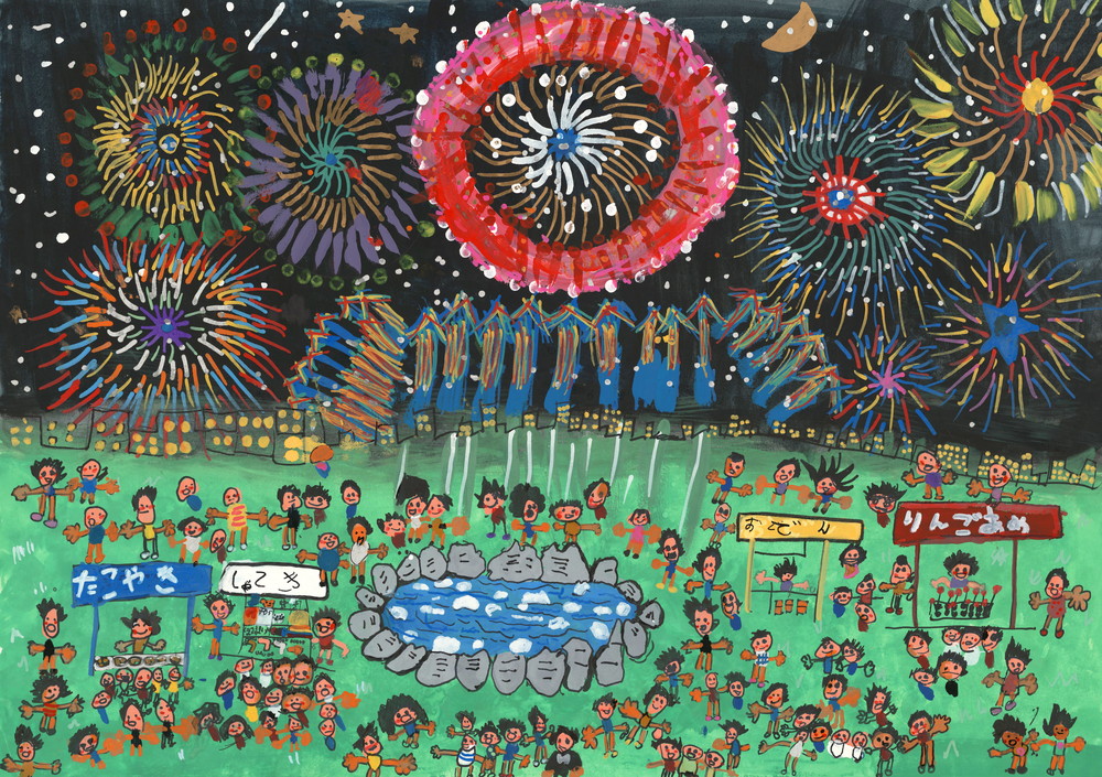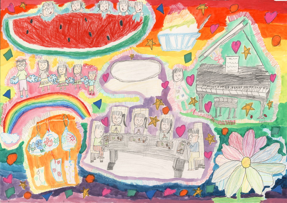 - 今年も、子どもたちの自由な発想と色彩豊かな表現があふれる作品が多数集まりました。夜の風景や動物園など、暗い場面をあえて明るく描く工夫が光り、どの作品にも元気や希望が感じられました。色の力で心を照らす子どもたちの感性に、大人も元気をもらえる素晴らしいコンクールとなりました。