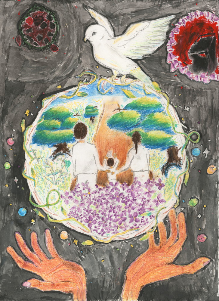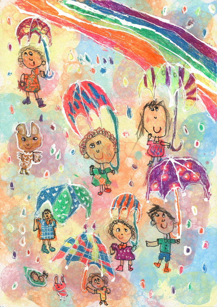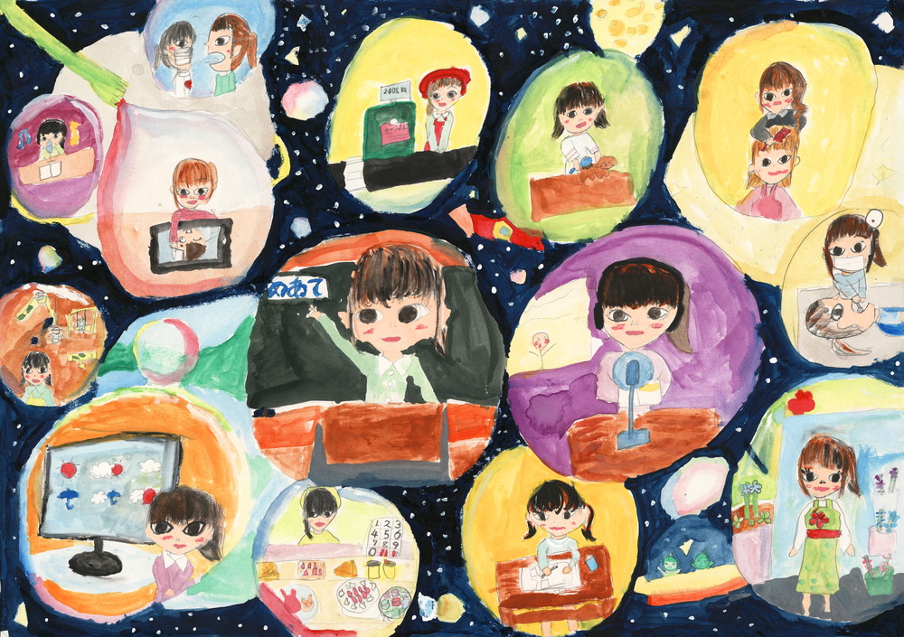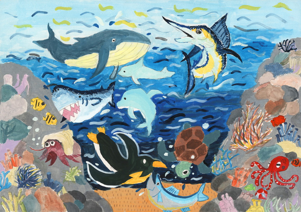 - 今回応募された作品は、お友達や家族との日常、動物や昆虫と触れあう様子、あかるい未来を想像したものなど、審査に携わった私たちも明るく朗らかな気持ちになる作品がたくさん見られました。画材もクレヨン、水彩絵の具、色鉛筆などを使った幅広い表現の工夫が見られ、子どもたちの豊かな感性を感じることができました。