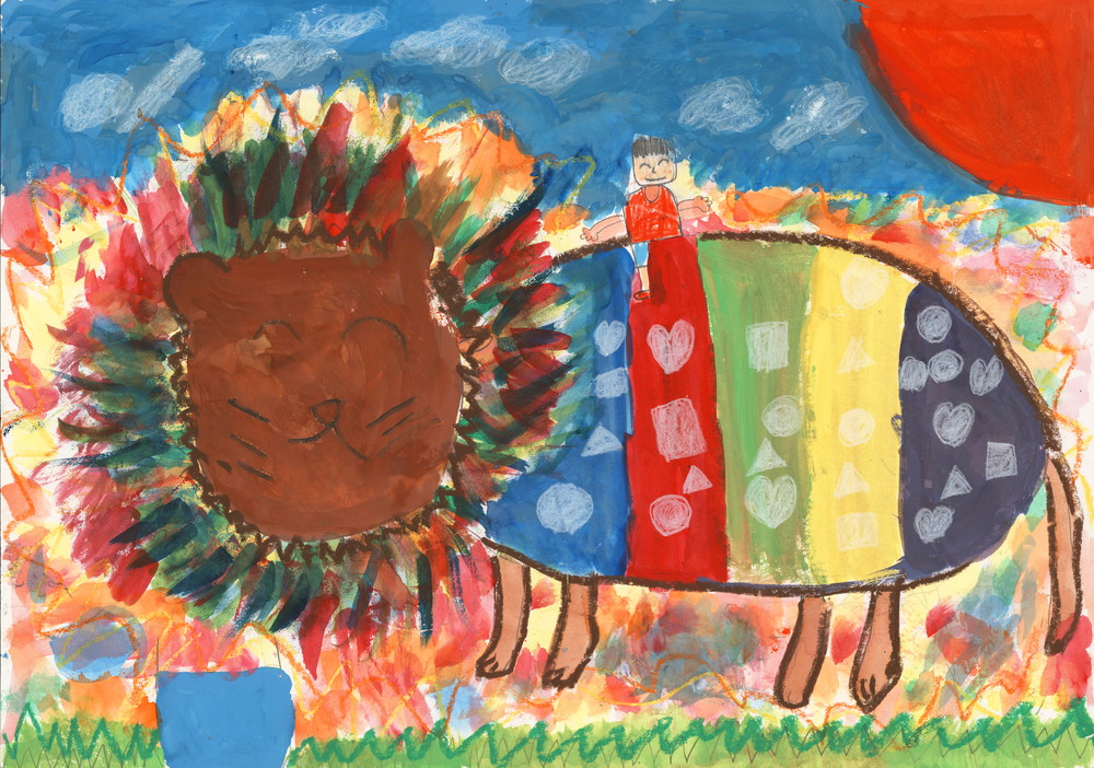- 様々な色が使われているのですが、やさしい色調で全体が調和しています。動物たちとの楽しい時間を過ごしたことが窺えます。