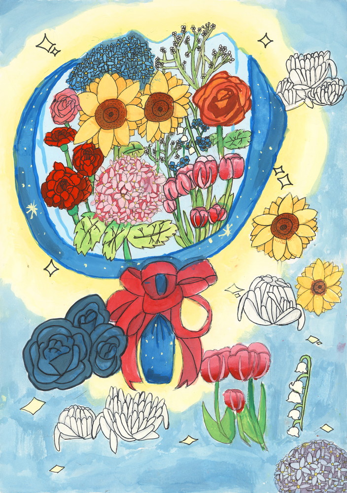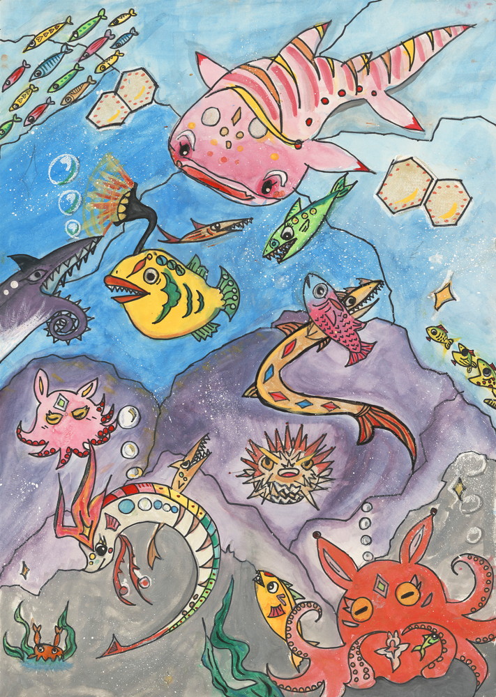 - 見たものをそのまま描くというよりも、見たものや経験したことから、感動や心が揺れ動いた様子、溢れ出る思いなど、子ども心に感じたありのままを表現している作品が多く、見る側の心も動かされました。子どもたちが表現する「あかるい未来」になるよう願っています。