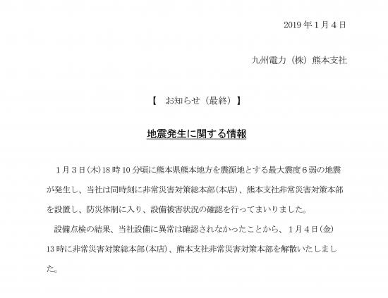 地震発生に関する情報(最終)