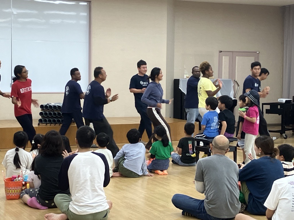 稲刈りで汗を流した後は、子どもたちも一緒にみんなでおにぎりをつくって美味しくいただき、海外研修生による歌と踊りも披露され、大いに盛り上がりました。