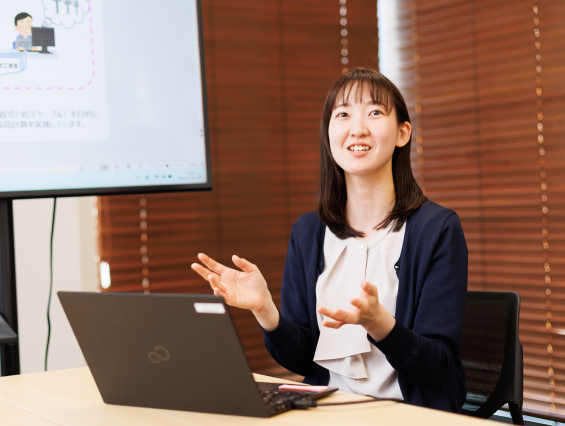 プロジェクトでは、業務を効率的に運用するために必要となるシステム機能や画面等に関する要件定義を担当しています。私自身がこれまでに経験してきた業務で培った知識を活かしつつ、業務の関連部署やシステムを開発するメーカーの方がたと連携を図り、業務そのものの見直しや改善も含めて検討を進めているため、非常にやりがいのある業務です。