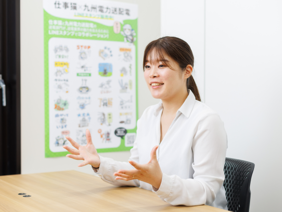 電工のPR活動は社内でも力を入れています。北九州支社の電力部設備管理グループに所属していた時に、若手社員を中心として現状の業界イメージを変えるようなアイディアを出し合い、当社オリジナルの仕事猫コラボLINEスタンプを作りました。毎月の販売数をチェックしているのですが、ありがたいことに多くの方にご利用いただいております。