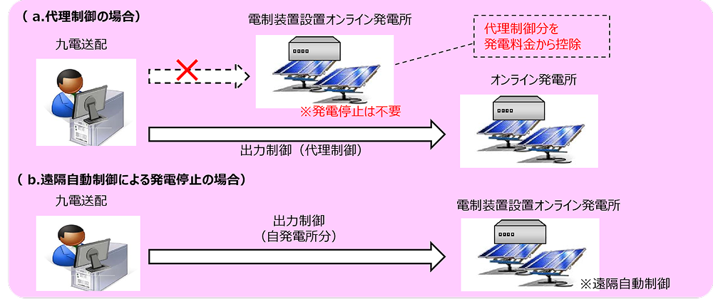 代理制御:オンライン事業者が、オフライン事業者の代わりに出力制御を行うこと