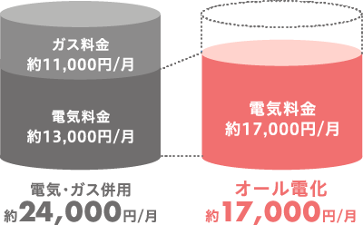 オール電化で電気とガスの光熱費を一本化すれば、ガスの基本料金を削減でき、ガス併用時に比べて光熱費がお得になります。