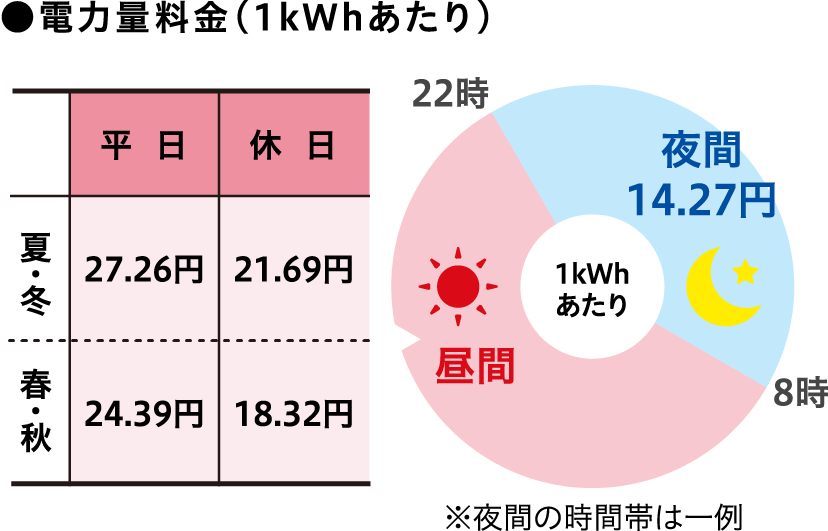 ●夜間や休日(土・日・祝日)が安くなる単価設定
