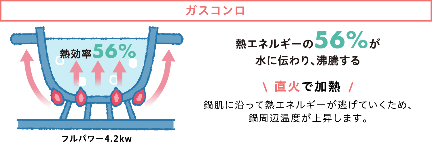 しかも、熱効率が高く、熱をムダなく鍋に伝えるので、