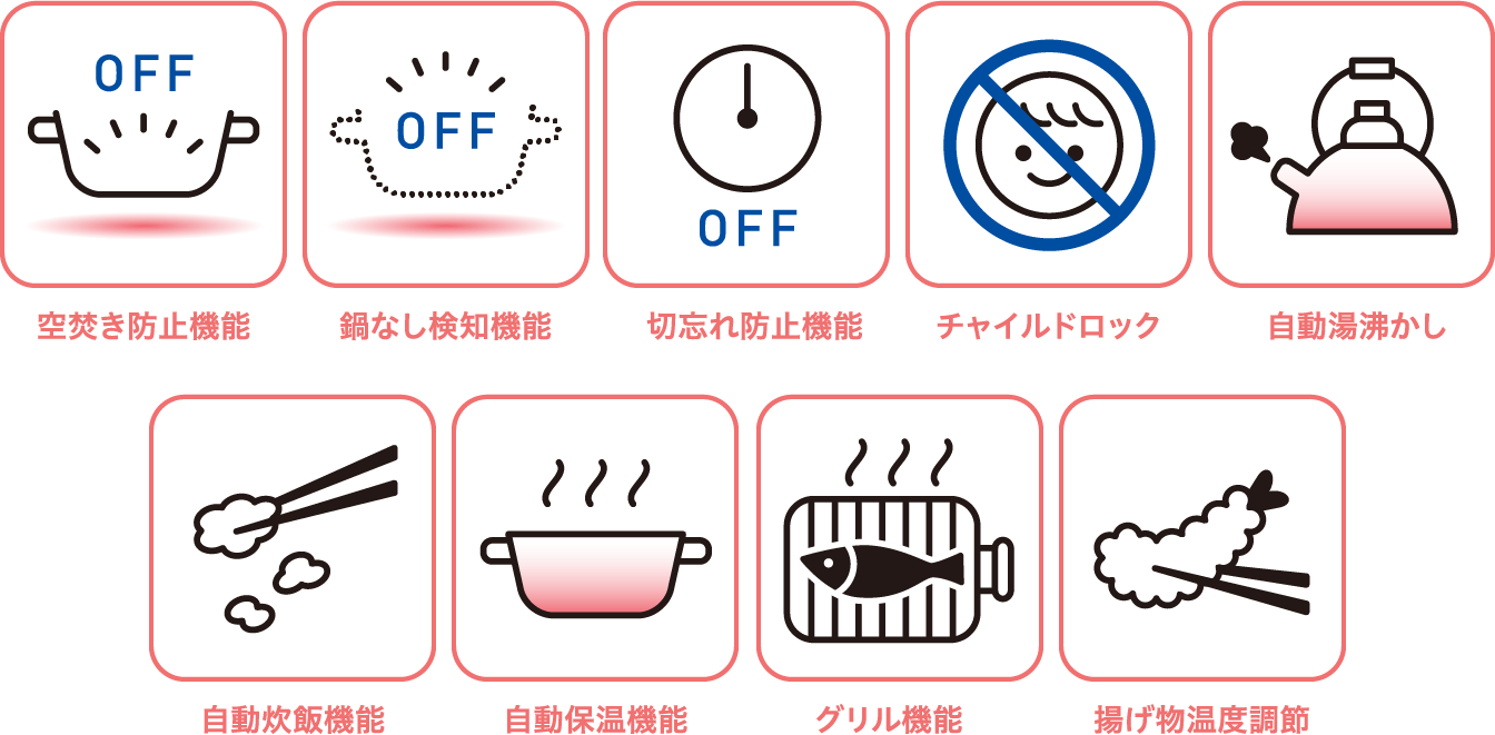 IHクッキングヒーターには、安全に使える機能はもちろん、