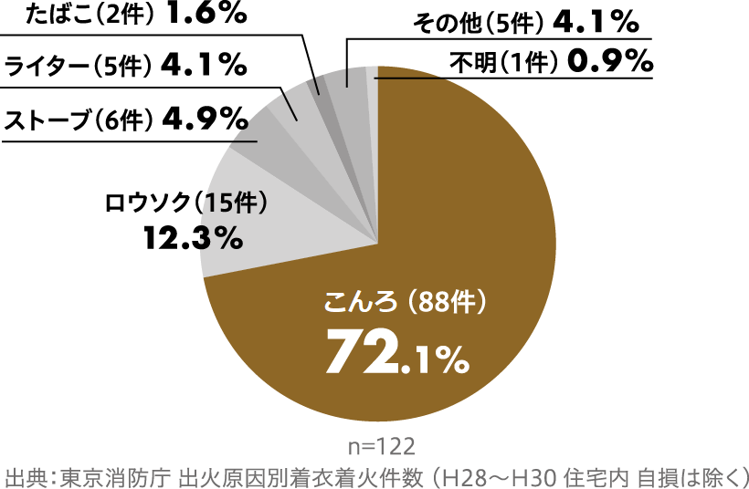 着衣着火件数のうち、こんろを出火原因とする火災が、