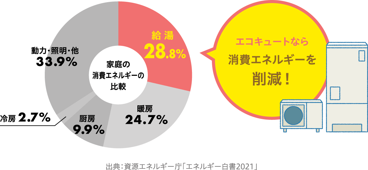 家庭で消費されるエネルギーの約3割が「給湯」です。