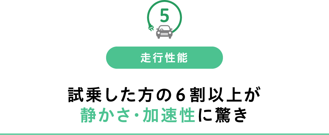 電気自動車に試乗した方からは、「ガソリン車のような音も振動もなく、疲れにくい」「静かで力強い加速が印象的」「運転しやすい」などの声が多く集まりました。また、騒音や排気ガスでご近所など周囲に迷惑をかけることもありません。